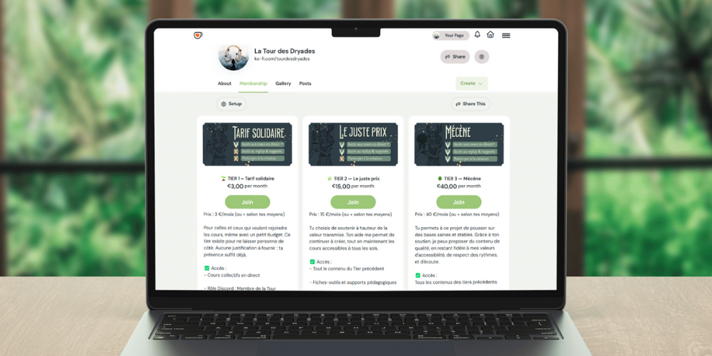 Trois paliers indicatifs, avec accès aux ateliers dès 3 €/mois.